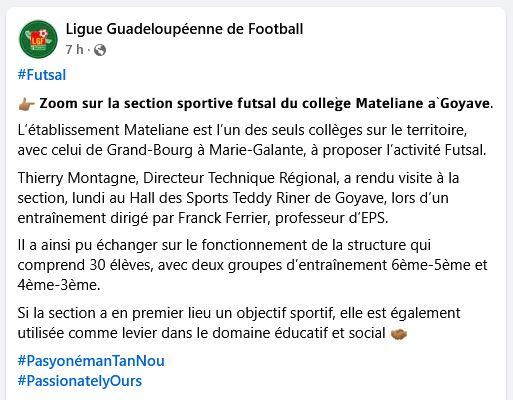 Nous avons reçu lundi la visite de Monsieur MONTAGNE Thierry, conseiller technique football de la LGF dans le cadre du suivi de la labellisation de notre section sportive Futsal.