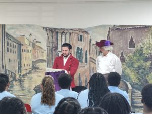 La troupe de théâtre du Versant est venue au collège le jeudi 20 mars pour jouer la pièce L’illusion de Molière pour les élèves de 3eme. Ce fut un spectacle très interactif incluant les caractéristiques des pièces de Molière :  comique de situation, de caractère, de geste.